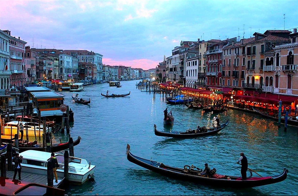 ๐ฝ๐๐๐๐ฬ๐๐, cel mai fotogenic oraศ al lumii, farmecฤ ศi captiveazฤ, dominรขnd, asemeni unei nave-amiral istorice, mฤreaศa flotฤ a insulelor din lagunฤ. Pentru a-i descoperi adevฤrata individualitate, trebuie sa vizitaศi principalele obiective turistice - Marele Canal, Piata San Marco, Palatul Dogilor. Existฤ si o laturฤ secretฤ a Veneศiei, pe care o puteศi admira numai de pe intinderea apei. Veศi intra astfel intr-o lume cu totul diferitฤ, care se dezvฤluie asa cum a fost ganditฤ sฤ se ofere privirii; uitaศi-vฤ prin ferestrele caselor vechi, in grฤdinile izolate, in atelierele navale unde gondolele aศteaptฤ sa fie reparate. Aici sฤlฤศtuieste adevฤratul spirit al Veneศiei!