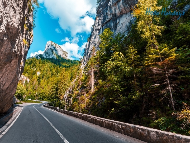 Cheile Bicazului, Munții Hășmaș - Parcul Național Cheile Bicazului-Hășmaș. Cheile Bicazului formează unul dintre cele mai spectaculoase defilee din România, tăiat în calcare și conglomerate de râul Bicaz, între localitățile Lacu Roșu (Harghita) și Bicaz-Chei (Neamț). Cheile Bicazului au o lungime de aproximativ 8 km, iar în unele sectoare lățimea văii scade sub 30 de metri, în timp ce pereții verticali ai cheilor se ridică spectaculos la peste 300 de metri înălțime. Altitudinea variază între 850 și 1.000 m.