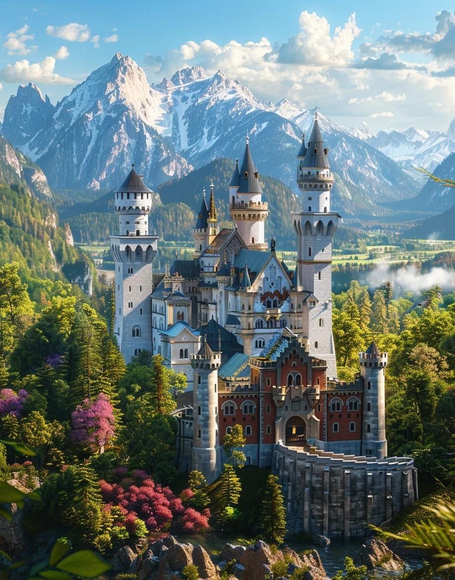 Castelul Neuschwanstein este o comoară arhitecturală situată în sudul Germaniei, în apropierea orașului Füssen din Bavaria. A fost construit la comanda regelui Ludwig al II-lea al Bavariei în secolul al XIX-lea și se remarcă prin arhitectura sa neogotică deosebit de detaliată și aspectul său de basm. Castelul Neuschwanstein a servit ca sursă de inspirație pentru celebrul Castel de la Disneyland și este adesea considerat unul dintre cele mai frumoase castele din lume.
